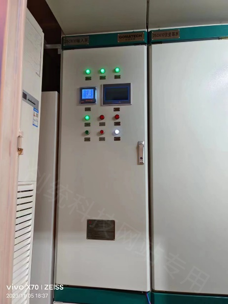 該電源裝置輸入電壓為415V/50HZ,采用440V/60HZ三路電壓輸出。該岸電電源設(shè)有可靠的計(jì)量顯示、完善的保護(hù)功能、精心設(shè)計(jì)的算法可保證系統(tǒng)達(dá)到最優(yōu)的性能。